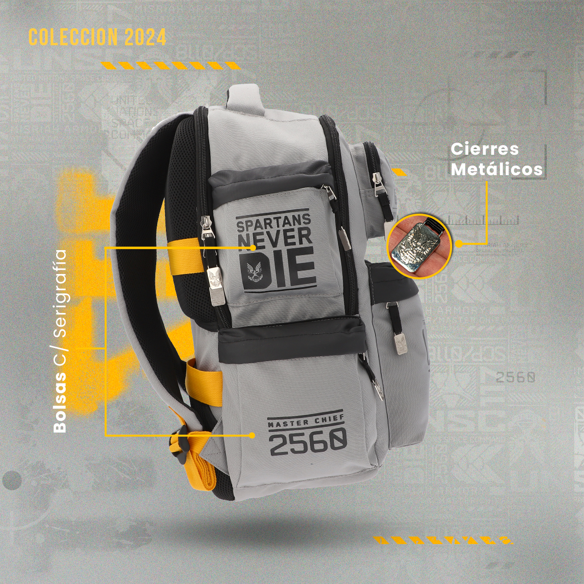 ¡La mochila Halo Táctica UNSC es la más completa de todas! Con múltiples bolsillos, podrás guardar todo lo que necesites de forma práctica. Además, cuenta con un puerto de carga para que nunca te quedes sin batería en tu móvil. ¡Haz que tu día a día sea más fácil con esta increíble mochila!