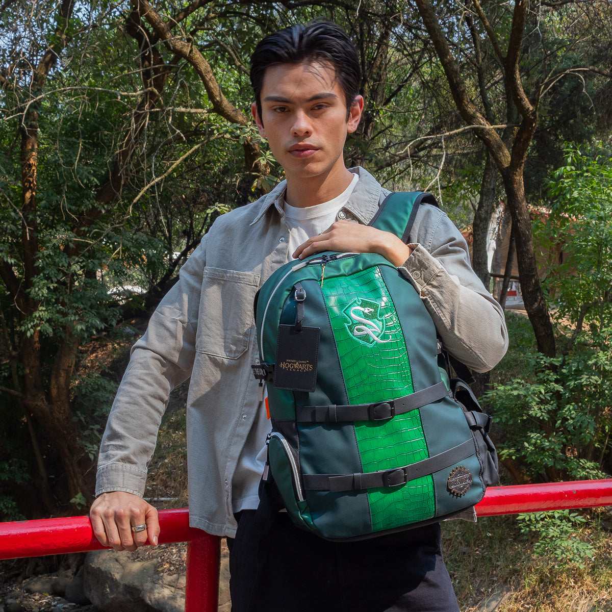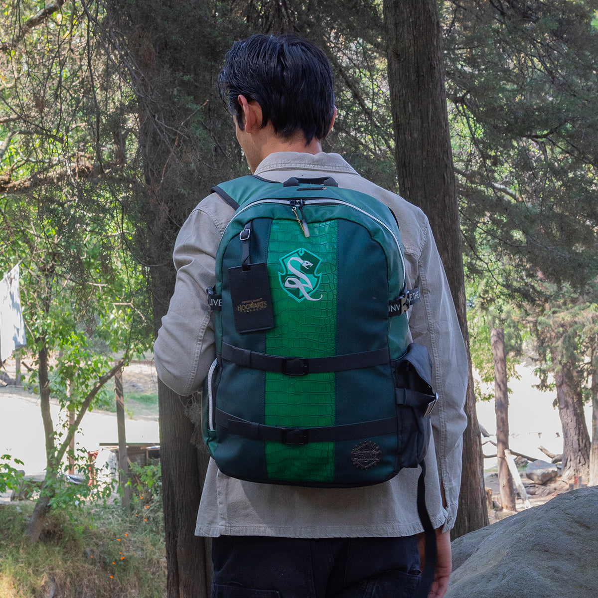 ¡Lleva tu amor por Slytherin contigo a todas partes con nuestra mochila Premium Hogwarts Legacy! Con un tarjetero incorporado, broches ajustables, placa metálica, bolsillo lateral y compartimento interno para tu laptop, además de un respaldo y tirantes ergonómicos para mayor comodidad. ¡Perfecta para llevar todo lo que necesitas en tus aventuras mágicas!